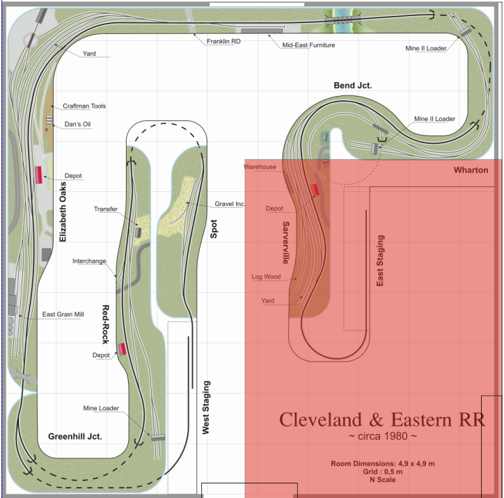 That means I will have to dismantle the Sarverville / East Staging penninsula section also with the loop to the coal-mines. With this section removed, the current system will not function anymore because of a large cut in operations.